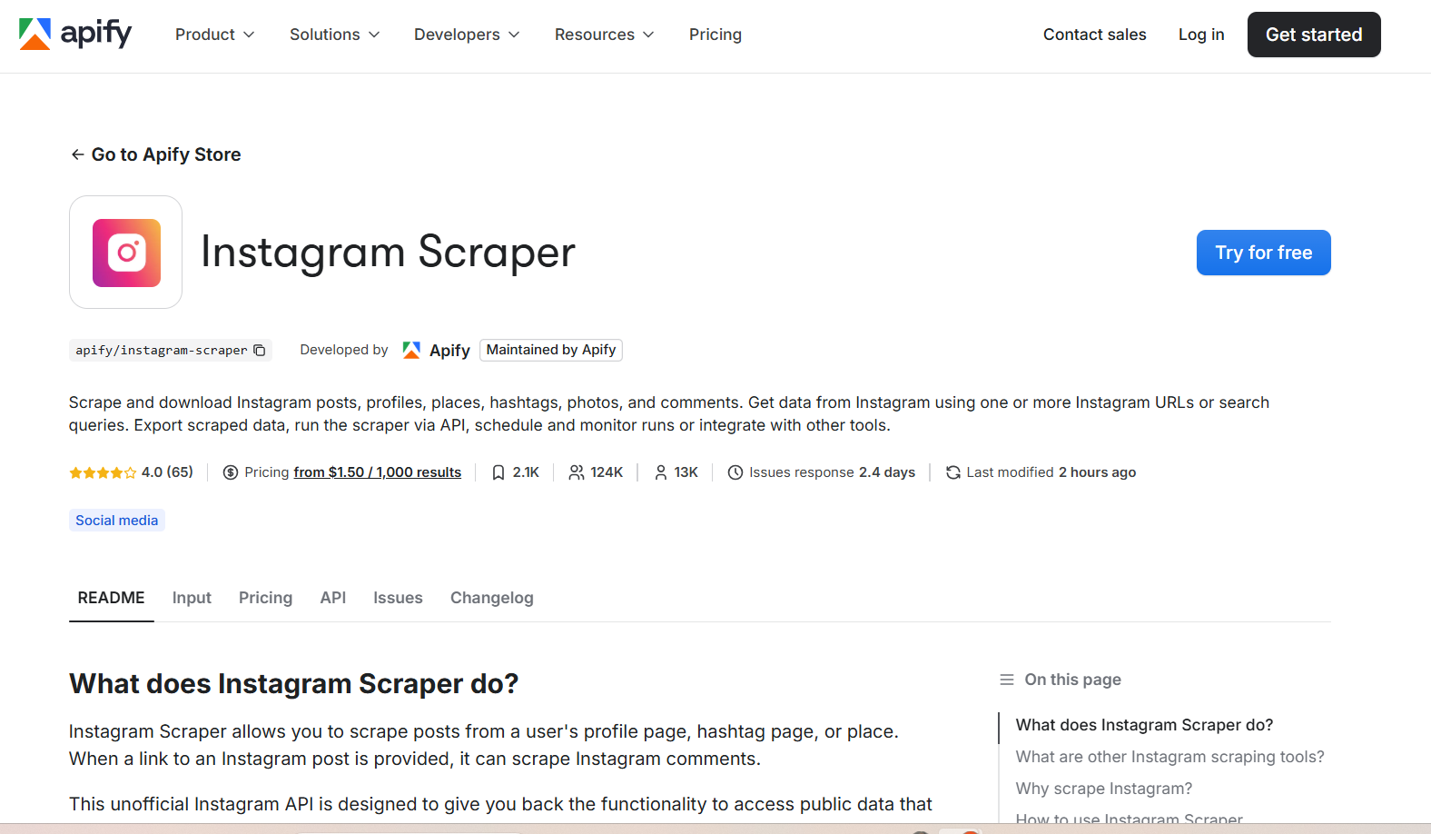 - Apify — Eine flexible Scraping-Plattform, die auf wiederverwendbaren Instagram-Scrapern basiert, die Sie an sich ändernde Projekte anpassen können.