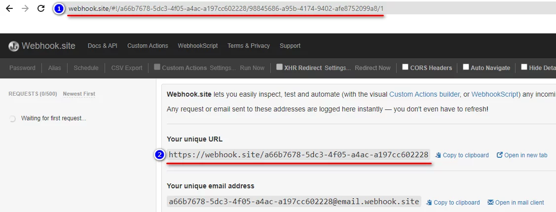Vamos a webhook.site y obtenemos un enlace único que aceptará solicitudes de nuestra parte.